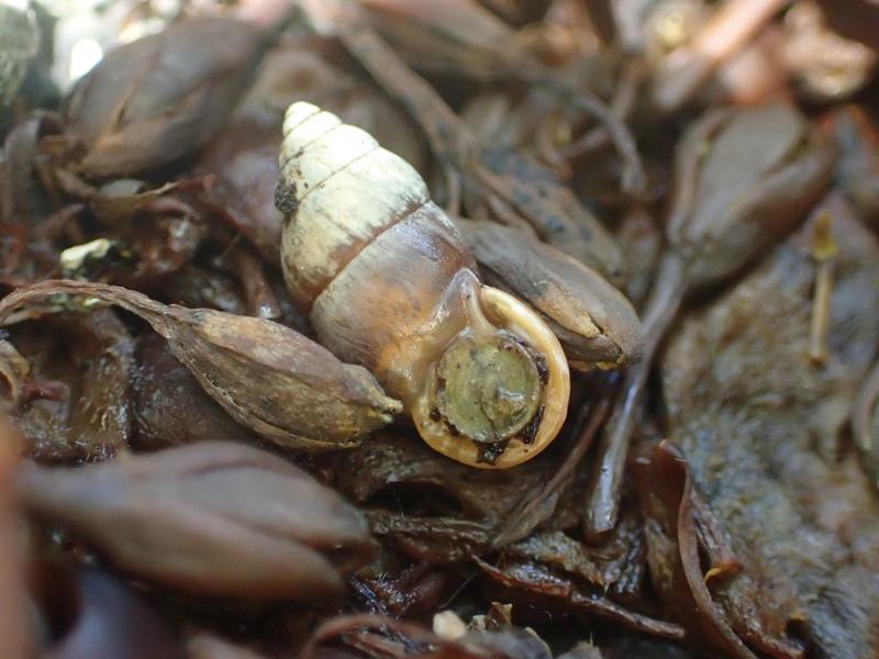 | 種の概要 | 殻長12mm程度。殻は紡錘形で,殻質厚く,堅固,殻表は平滑で,茶褐色。殻口は丸く,口縁上部に溝がある。山地,あるいは海岸の林床の落ち葉下に生息する。 |