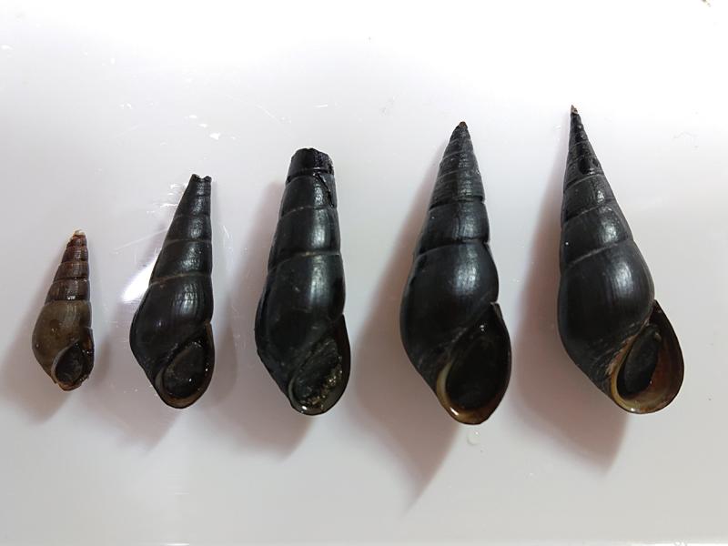 | 種の概要 | 殻長60mmに達するが,小型の個体群もある。伊豆半島・響灘から九州南部,奄美大島に分布(日本ベントス学会,2012)。河口汽水域の流れの緩やかな泥底に生息する。別名・レベックカワニナ。 |