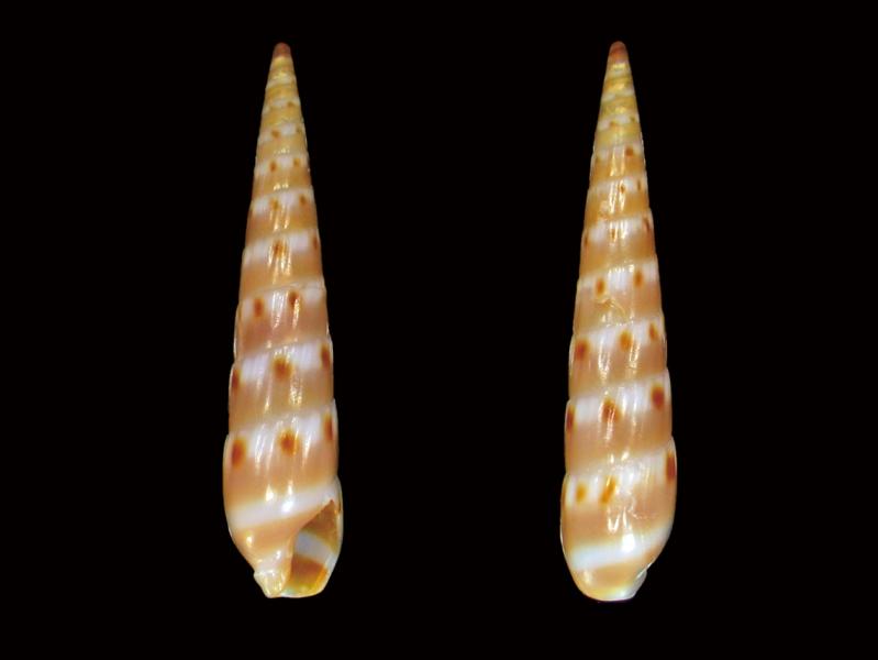 | 種の概要 | 殻長35mm,細い塔形,黄色や紫黒色で,縫合下に褐色斑列をめぐらす。房総・男鹿半島および朝鮮半島以南,インド・太平洋に分布。開放的な湾や外洋の低潮帯から水深20mの砂底に生息する。 |