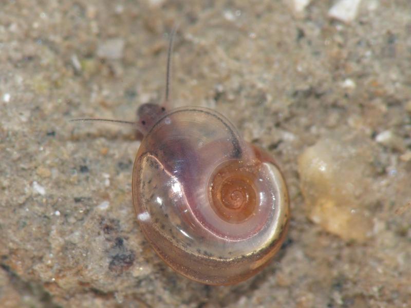 | 種の概要 | 殻径約10mm。左巻きで,螺管は殻口に向かって強く広がり,殻口部では前層を巻き込む形になっている。殻の縁はとがる。殻頂は強く落ち窪む。殻表面は平滑で強い光沢があるが,付着物に覆われている個体もいる。触角は細くやや長い。河川,水田,休耕田,ため池などの緩流域から止水域に生息する。富栄養な環境を好むと思われる。本州から南西諸島に分布。別名・レンズヒラマキ。 |